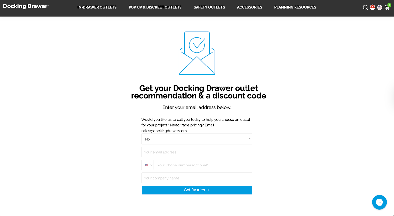 Docking Drawer introduced a quiz funnel using ConvertFlow to help visitors identify the right outlet configuration before reaching product pages. Instead of browsing, visitors are guided through a short decision flow.